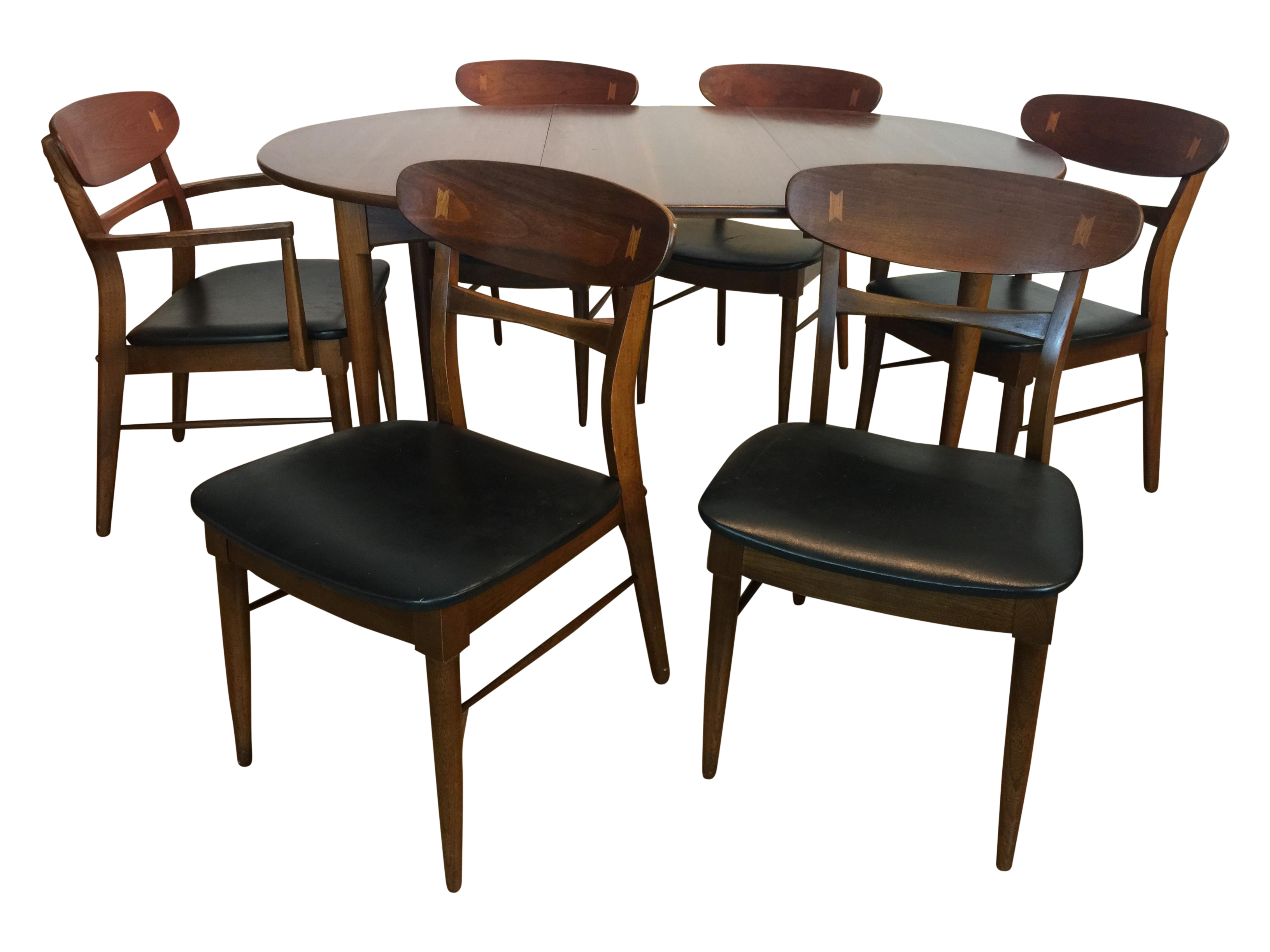 The whole set including the chairs is in great shape. The ever elusive lane acclaim dining set. Dining tables with dansih modern design. The tapered legs have faux black tips. Mid century modern dining chair set by lane.